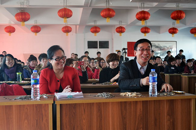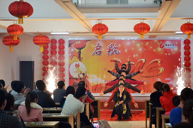 聯(lián)歡會(huì)在歌曲聯(lián)唱《歡天喜地拜大年》的歡快節(jié)奏中拉開(kāi)帷幕,公司各部門(mén)紛紛上臺(tái),《新年好》、《恭喜發(fā)財(cái)》、《正月里來(lái)正月正》、《小拜年》、《恭喜恭喜你》等經(jīng)典拜年歌曲再現(xiàn),別出心裁的出場(chǎng)方式讓人目不暇接。由市場(chǎng)部北京區(qū)表演的舞蹈《美觀不美觀》將演出推向了高潮,場(chǎng)下掌聲不斷,歡快、喜慶、熱烈的氣氛溢滿會(huì)場(chǎng),整個(gè)會(huì)場(chǎng)暖意融融,變成了歡樂(lè)的海洋。