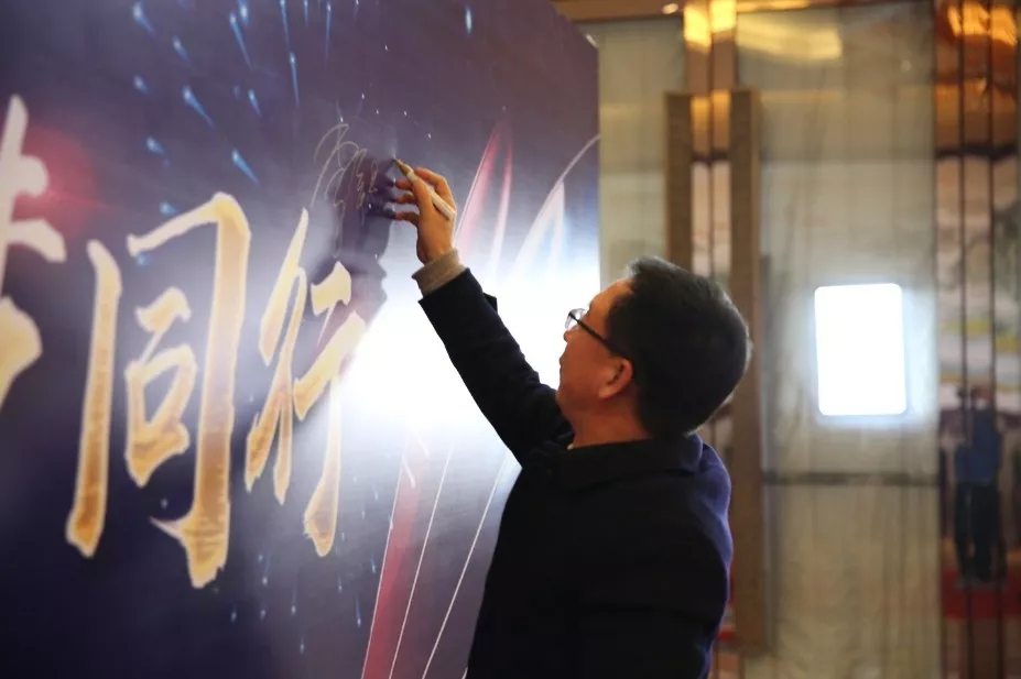 李銀祥董事長(zhǎng)和其他幾位領(lǐng)導(dǎo)在會(huì)場(chǎng)入口