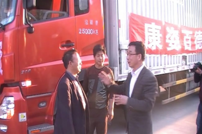 25日上午9點,物資車到達石家莊。石家莊康姿百德總代理李志華,代表新華區(qū)、裕華區(qū)、橋西區(qū)、橋東區(qū)、長安區(qū)、開發(fā)區(qū)、辛集市、平山縣、藁城縣、正定縣等地的代理商將愛心物資裝上貨車
