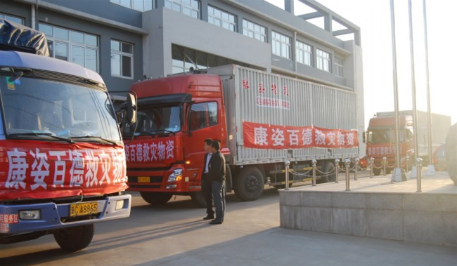 “回饋社會,造福人類”,始終是康姿百德公司秉承的經(jīng)營理念。全國各地的康姿百德經(jīng)銷商在把幸福和健康帶給人們的同時,也深知自己身上的責(zé)任,不忘奉獻自己的愛心。他們積極捐款捐物,向災(zāi)區(qū)人民伸出援助之手。物資車途經(jīng)北京、河北、山西、河南等地時,當(dāng)?shù)亟?jīng)銷商囑咐司機一定把這份愛心物資安全送到災(zāi)區(qū), “捎去我的愛心,帶上我的祝?!?,這是康姿百德人最強烈的心聲。