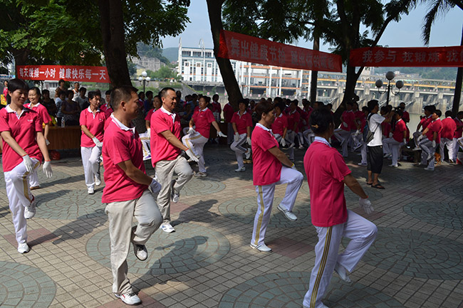 8月8日,福建永安市江濱公園,鼓樂喧天,熱鬧非凡,“我運動、我健康、我快樂”,“每天鍛煉一小時,健康生活一輩子”等宣傳條幅顯得格外醒目。由永安康姿百德經(jīng)銷商和當(dāng)?shù)厣鐓^(qū)共同舉辦的2014“全民健身 快樂同行”大型公益活動總結(jié)表彰大會正在這里隆重舉行。永安市(區(qū))老齡委、老體協(xié)等單位領(lǐng)導(dǎo)出席啟動儀式并講話,對本次活動給予高度評價,對康姿百德健身操給永安人民健康帶來的好處給予充分肯定。