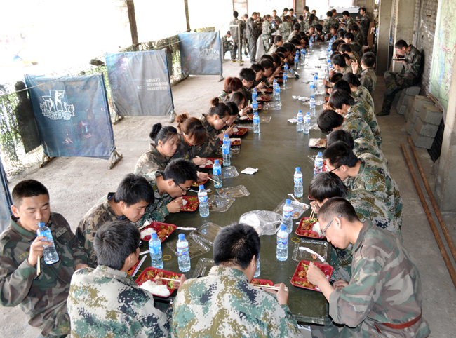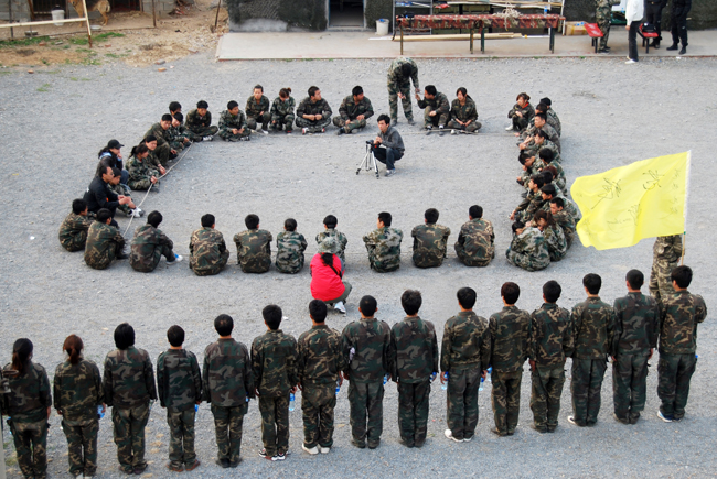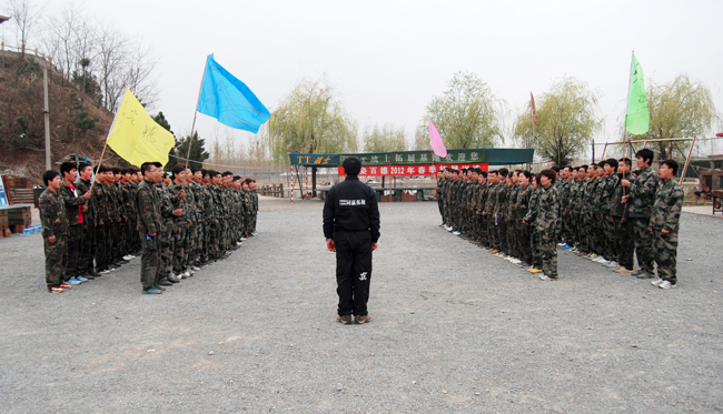 上午8時,簡短的破冰活動后,教練員對全天活動作出詳細(xì)部署并提出嚴(yán)格要求。全體學(xué)員迅速組建“蒼狼”、“勇者”、“亮劍”和“蟑螂”四個團(tuán)隊(duì)并快速融入各自的團(tuán)隊(duì),高舉團(tuán)隊(duì)旗幟、高呼團(tuán)隊(duì)口號、高唱團(tuán)隊(duì)隊(duì)歌,大家不畏困難、齊心協(xié)力,圓滿的完成了全天拓展項(xiàng)目。