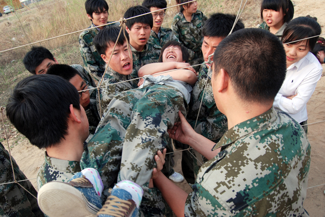 “極速60秒”、“電網(wǎng)逃生”、“孤島求生”、“盲人方陣”等項(xiàng)目檢驗(yàn)了學(xué)員之間的信任與責(zé)任、溝通與合作、“小團(tuán)體”和“大團(tuán)隊(duì)”的關(guān)系處理。在“極速60秒”環(huán)節(jié),一次次失利、一次次頭腦風(fēng)暴,最終取得成功時,大家懂得了溝通與配合對團(tuán)隊(duì)有多么重要?!肮聧u求生”等項(xiàng)目更是讓學(xué)員們深刻體會到團(tuán)隊(duì)的概念。讓大家體驗(yàn)?zāi)繕?biāo)與結(jié)果的差異性,引發(fā)換位思考,反思并總結(jié)領(lǐng)導(dǎo)與執(zhí)行過程中脫節(jié)的真正原因。無論是大家小心翼翼的將隊(duì)友抬過電網(wǎng),還是啞巴與盲人搭建木橋以實(shí)現(xiàn)荒島求生,都告訴大家信任是團(tuán)隊(duì)合作的基礎(chǔ),團(tuán)隊(duì)合作是通向成功的唯一途徑?!懊と朔疥嚒杯h(huán)節(jié),學(xué)員們吃了當(dāng)頭一棒。所有人蒙上雙眼,無法語言交流,最終由于缺乏有效溝通和默契配合,大家以失敗告終。通過此類項(xiàng)目,大家不僅意識到自我責(zé)任,也更加懂得關(guān)愛和信任團(tuán)隊(duì)中的每一個人,認(rèn)識到高效有序的溝通對于團(tuán)隊(duì)至關(guān)重要。