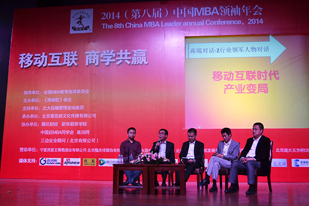 2014年5月2日至4日,我公司董事長李銀祥應(yīng)邀出席了在北京召開的第八屆中國MBA領(lǐng)袖年會。會上,李銀祥作為特邀嘉賓,參與行業(yè)領(lǐng)軍人物高端對話,并圍繞“移動互聯(lián)時代產(chǎn)業(yè)變局”這一主題,對當(dāng)前國際國內(nèi)移動互聯(lián)網(wǎng)產(chǎn)業(yè)的發(fā)展局勢進(jìn)行了深入分析,闡述了自己的觀點。