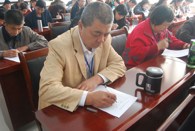 與會經(jīng)銷商在進(jìn)行書面考試考核