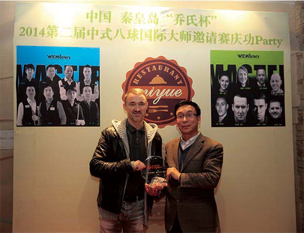 經(jīng)過四天的激烈角逐,我公司贊助的第二屆中式八球國(guó)際大師邀請(qǐng)賽于1月5日晚在秦皇島奧體中心落下帷幕,英格蘭選手加雷斯·波茨以其高超的球技和良好的素質(zhì),將本屆冠軍獎(jiǎng)杯和30萬(wàn)元獎(jiǎng)金收入囊中。 總決賽結(jié)束,我公司董事長(zhǎng)、總經(jīng)理李銀祥出席了選手們的慶功宴會(huì),對(duì)選手們精湛的球技和出色的表現(xiàn)表示欣賞和贊許。宴會(huì)期間,李銀祥還向“臺(tái)球皇帝”亨德利贈(zèng)送了康姿百德玉磁紀(jì)念枕,并手捧精心制作的印有康姿百德LOGO的工藝品與亨德利合影留念。