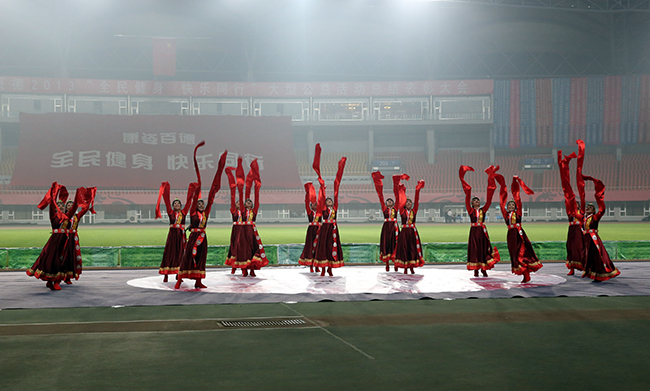 督導師進行紅旗表演 康姿百德健身操表演,是這次活動中檢閱和展示全民健身成果的重要內容,也是最為引人注目的重頭戲。20多個省、市、自治區(qū)的8000多名康姿百德健身操愛好者,組成188個代表隊先后入場,表演隊伍浩浩蕩蕩、首尾相連,偌大的體育場瞬時變成一個舞的海洋。參賽隊員中年齡最大的72歲,最小的只有9歲,大家雖然經(jīng)歷了長途跋涉的旅途勞頓,但個個精神飽滿、熱情高漲,橫平豎直、整齊優(yōu)美的表演,帶給全場觀眾以美的享受,向人們傳遞著積極向上、健康文明的生活方式,贏得了全場觀眾的陣陣掌聲。經(jīng)過6個多小時的精彩表演,在評委們公正認真的打分評判下,比賽共產(chǎn)生一等獎2個,二等獎6個,三等獎9個。