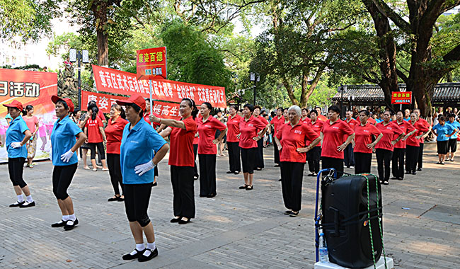 2014年 8月3日,為迎接第5個(gè)“全民健身日”的到來和第14屆江西省省運(yùn)會(huì)在贛州市舉行,贛州市章貢區(qū)體育局聯(lián)合贛州康姿百德戶外健身營(yíng)共同舉辦了“迎省運(yùn)全民健身日”活動(dòng)。 由贛州康姿百德戶外健身營(yíng)160多名成員組成的七個(gè)健身操表演方隊(duì)和一個(gè)康姿百德女子舞蹈隊(duì),在健身操、舞蹈、武術(shù)、太極拳等展演中最為引人注目,對(duì)宣傳立體健康、助推全民健身、提高康姿百德的社會(huì)影響力起到了積極作用。 江西七臺(tái)、贛州電視臺(tái)等新聞媒體,對(duì)本次活動(dòng)進(jìn)行了現(xiàn)場(chǎng)采訪,其活動(dòng)新聞將于近期在上述各臺(tái)新聞節(jié)目中播出。