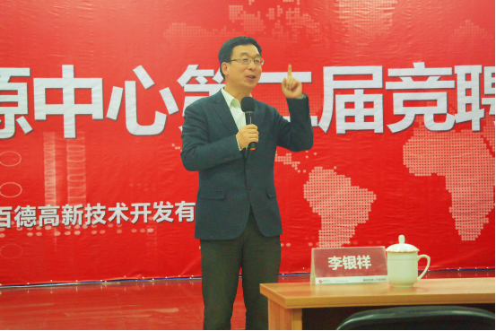 康姿百德董事長李銀祥先生為競聘員工做競聘動員