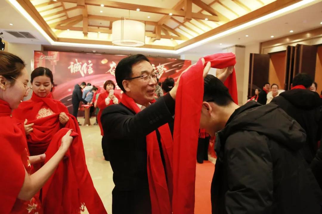 家人們滿懷喜悅的心情,昂首闊步走在會(huì)場(chǎng)入口的紅毯上。不得不說,紅毯秀是最能凸顯家人們氣場(chǎng)的環(huán)節(jié),此刻,他們就是最耀眼的明星。“紅圍巾,福氣臨”,公司領(lǐng)導(dǎo)們親自為家人們佩戴上了紅圍巾,愿家人們來年更紅火!家人們紛紛在簽名墻上留下了自己的簽名,這不僅有對(duì)2019年的感觸,更有對(duì)2020年的期待。