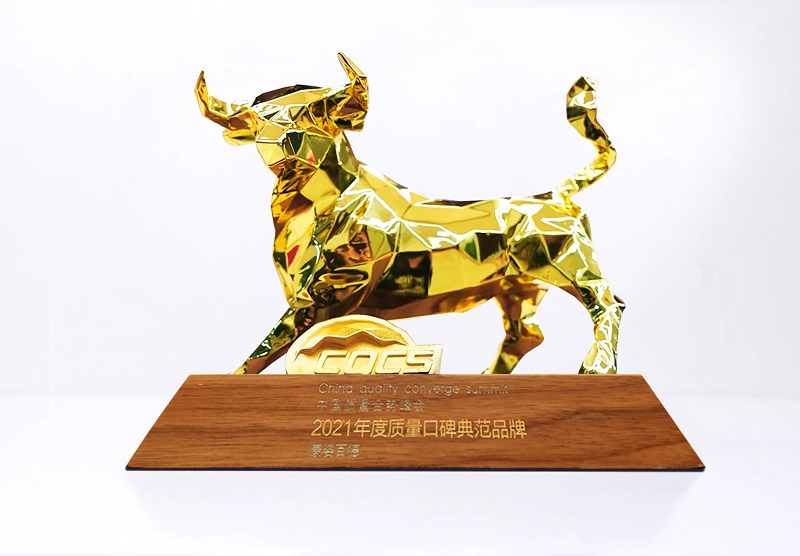 “2021年度質(zhì)量口碑典范品牌” 榮譽獎杯