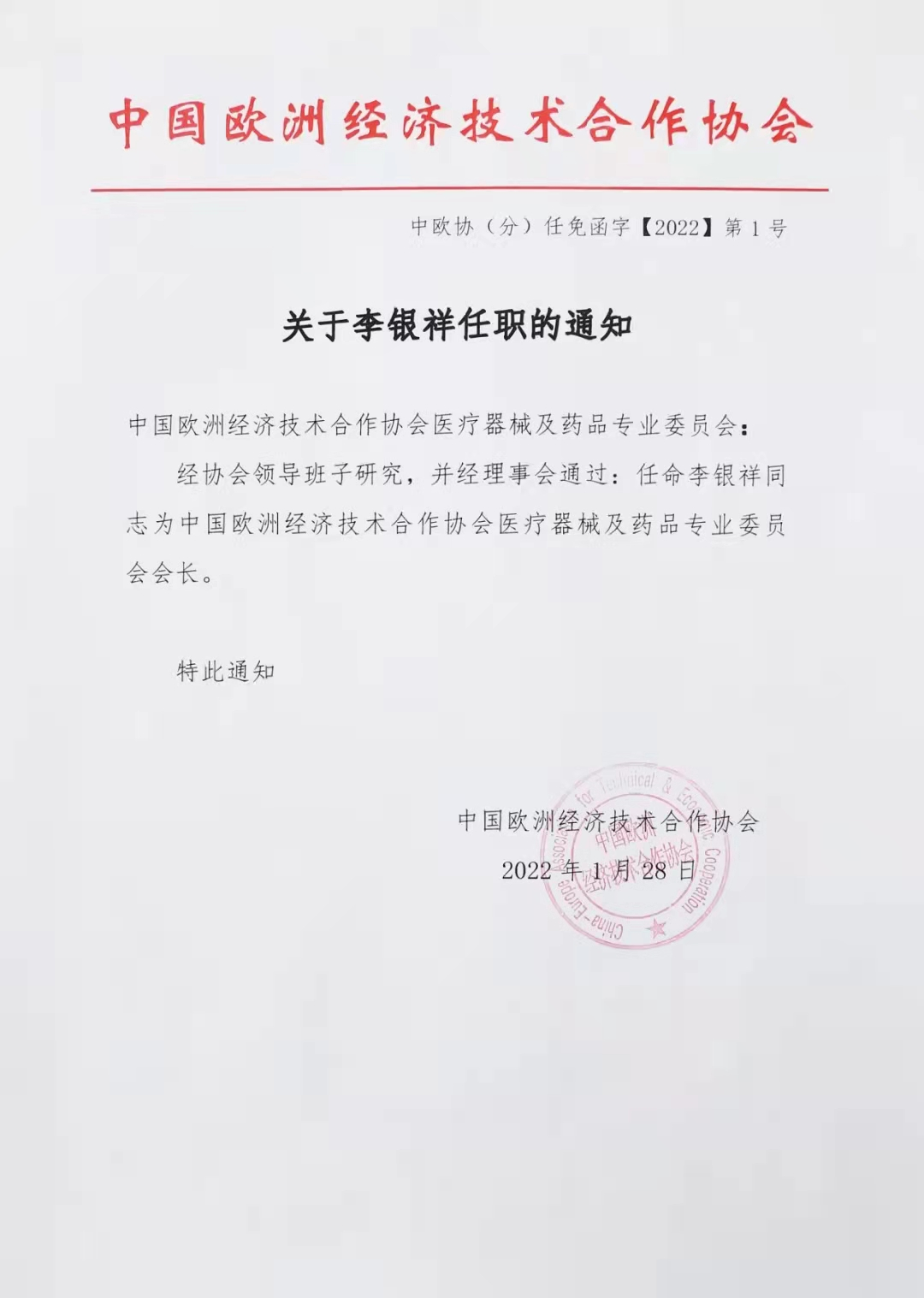 中國歐洲經(jīng)濟技術(shù)合作協(xié)會醫(yī)療器械及藥品專業(yè)委員會(以下簡稱“中歐協(xié)會醫(yī)療器械及藥品專業(yè)委員會”),以關(guān)注國內(nèi)外相關(guān)行業(yè)政策、定期組織醫(yī)療器械和藥品企業(yè)進行國際交流活動等為主要內(nèi)容,構(gòu)筑了中國與歐洲醫(yī)療器械行業(yè)之間交流合作的橋梁。該協(xié)會隸屬于中歐協(xié)會, 接受中歐協(xié)會的業(yè)務(wù)指導(dǎo)和監(jiān)督管理。李銀祥董事長的當(dāng)選充分說明了我們在相關(guān)協(xié)會的影響力。