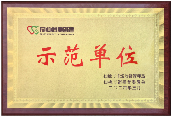 榮獲"放心消費(fèi)創(chuàng)建示范單位"榮譽(yù)稱號(hào)