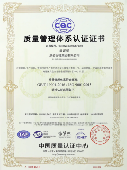 早在2008年,康姿百德就已順利完成并通過質(zhì)量管理體系認證審核。這說明康姿百德在標(biāo)準化經(jīng)營、規(guī)范化管理模式、質(zhì)量管理體系運行方面得到了標(biāo)準化組織的充分認可。廣大消費者選擇通過ISO 9001認證的產(chǎn)品,可以得到更好的保障、更高的滿意度和更好的服務(wù)質(zhì)量。