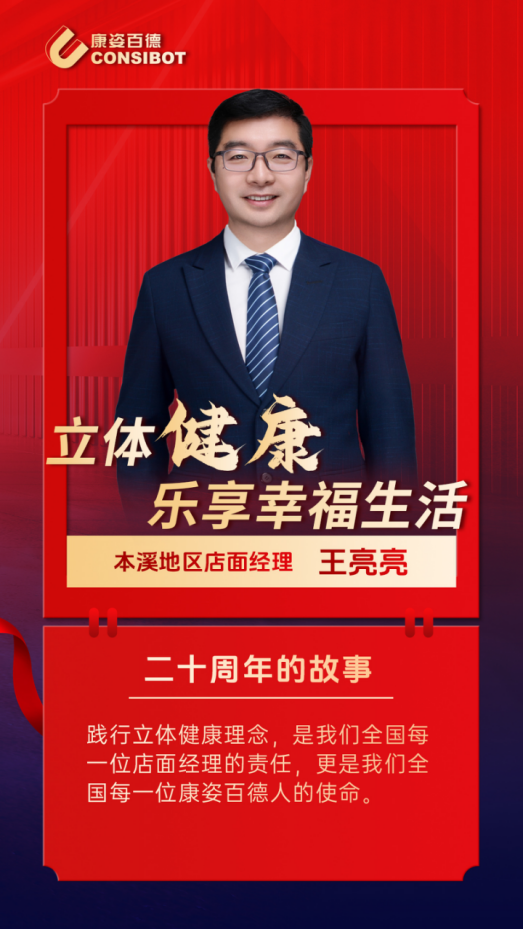 在康姿百德工作10年來,他憑借著對大健康事業(yè)的強(qiáng)烈責(zé)任感和滿腔熱情,把自己的理想和抱負(fù)傾注在所熱愛的事業(yè)上,不僅為客戶提高優(yōu)質(zhì)的產(chǎn)品和服務(wù),傳遞健康的生活理念,還積極踐行著康姿百德“立體健康”的理念,贏得了本溪地區(qū)客戶的信任和認(rèn)可。他就是本溪地區(qū)店面經(jīng)理王亮亮。