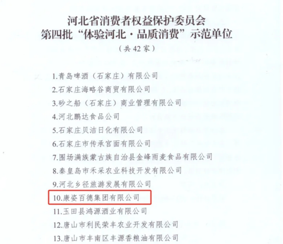 秦皇島市場(chǎng)監(jiān)管部門于12月10日在公眾平臺(tái)公布了本市第四批“體驗(yàn)河北·品質(zhì)消費(fèi)”示范單位入選名單,康姿百德集團(tuán)榜上有名。