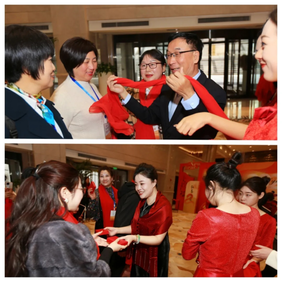 年會伊始,一條鮮紅的星光大道從會場入口延伸至主舞臺。全體參會家人身著正裝,神采奕奕踏上紅毯,在攝影鏡頭的聚焦下展現(xiàn)自信風(fēng)采。董事長李銀祥攜管理層團(tuán)隊親自迎接,為每一位家人佩戴象征“鴻運當(dāng)頭”的定制紅絲巾。簽名墻上,密密麻麻的名字不僅記錄著2024年的奮斗足跡,更寫滿對2025年的熱切期待。
