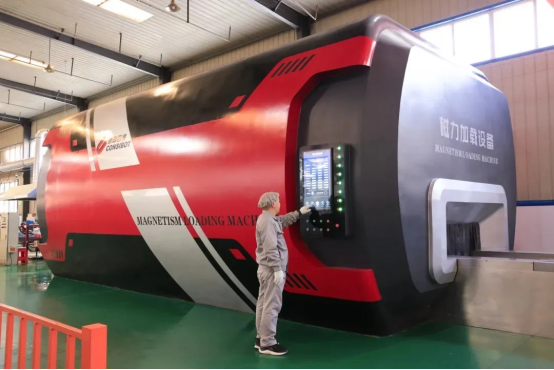 磁力加載設(shè)備是磁性寢具自動(dòng)化生產(chǎn)線的重要組成部分,是由康姿百德集團(tuán)自主研發(fā)、設(shè)計(jì)的。康姿百德磁力加載設(shè)備全長(zhǎng)15米,寬5米,高4米。設(shè)備外觀采用工業(yè)美學(xué)設(shè)計(jì),融入現(xiàn)代化工藝及設(shè)計(jì)元素,展現(xiàn)了康姿百德集團(tuán)科技、智能、高端的品牌形象。