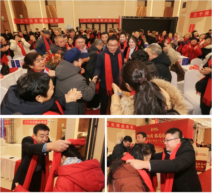 紅毯迎客,盛情先達(dá)。銷售公司領(lǐng)導(dǎo)早早守候在紅毯兩側(cè),為每一位到場(chǎng)的客戶朋友佩戴紅圍巾,以一抹吉祥紅傳遞美好祝愿??底税俚录瘓F(tuán)李銀祥董事長(zhǎng)的到來,瞬間點(diǎn)燃全場(chǎng)氛圍,客戶們熱情揮手、頻頻致意,掌聲與歡呼聲交織共振,滿場(chǎng)暖意流淌,盡顯相聚溫情。