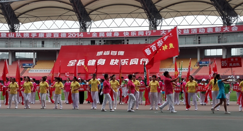 9月16日,中國(guó)登山隊(duì)攜手康姿百德2014“全民健身,快樂(lè)同行”大型公益活動(dòng)表彰大會(huì)在秦皇島奧體中心體育場(chǎng)舉行。來(lái)自全國(guó)30個(gè)省、市、區(qū)的257個(gè)代表隊(duì)、11000多人進(jìn)行了康姿百德第三套健身操展演,以此慶祝公司成立10周年。活動(dòng)共評(píng)選出展演一等獎(jiǎng)5個(gè)、二等獎(jiǎng)10個(gè)、三等獎(jiǎng)15個(gè),并表彰了1600多名2014年“健康大使”。
