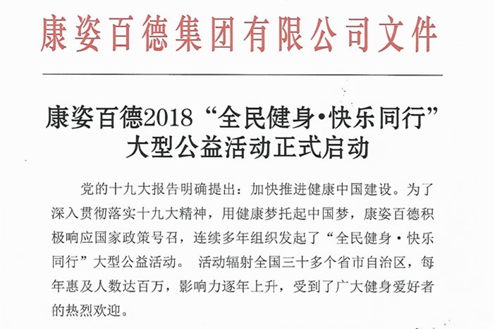康姿百德2018“全民健身?快樂同行”大型公益活動(dòng)正式啟動(dòng),公告全文如下:...